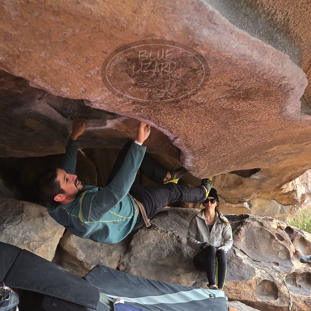 Blue Lizard Climbing and Yoga Hueco Tanks guiding on January 15, 2023, with Anthony, Fern, Ginger, Greg, Joanie, and Sophie & Kieran |