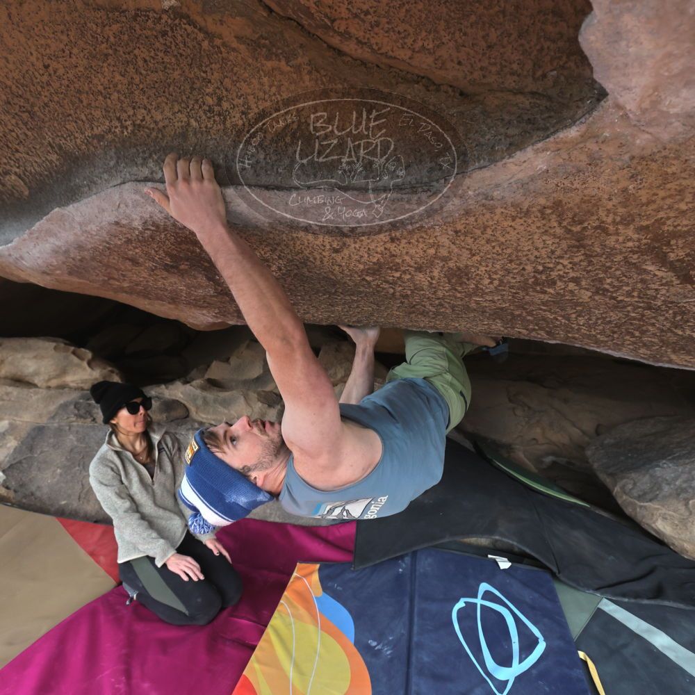 Blue Lizard Climbing and Yoga Hueco Tanks guiding on January 15, 2023, with Anthony, Fern, Ginger, Greg, Joanie, and Sophie & Kieran |