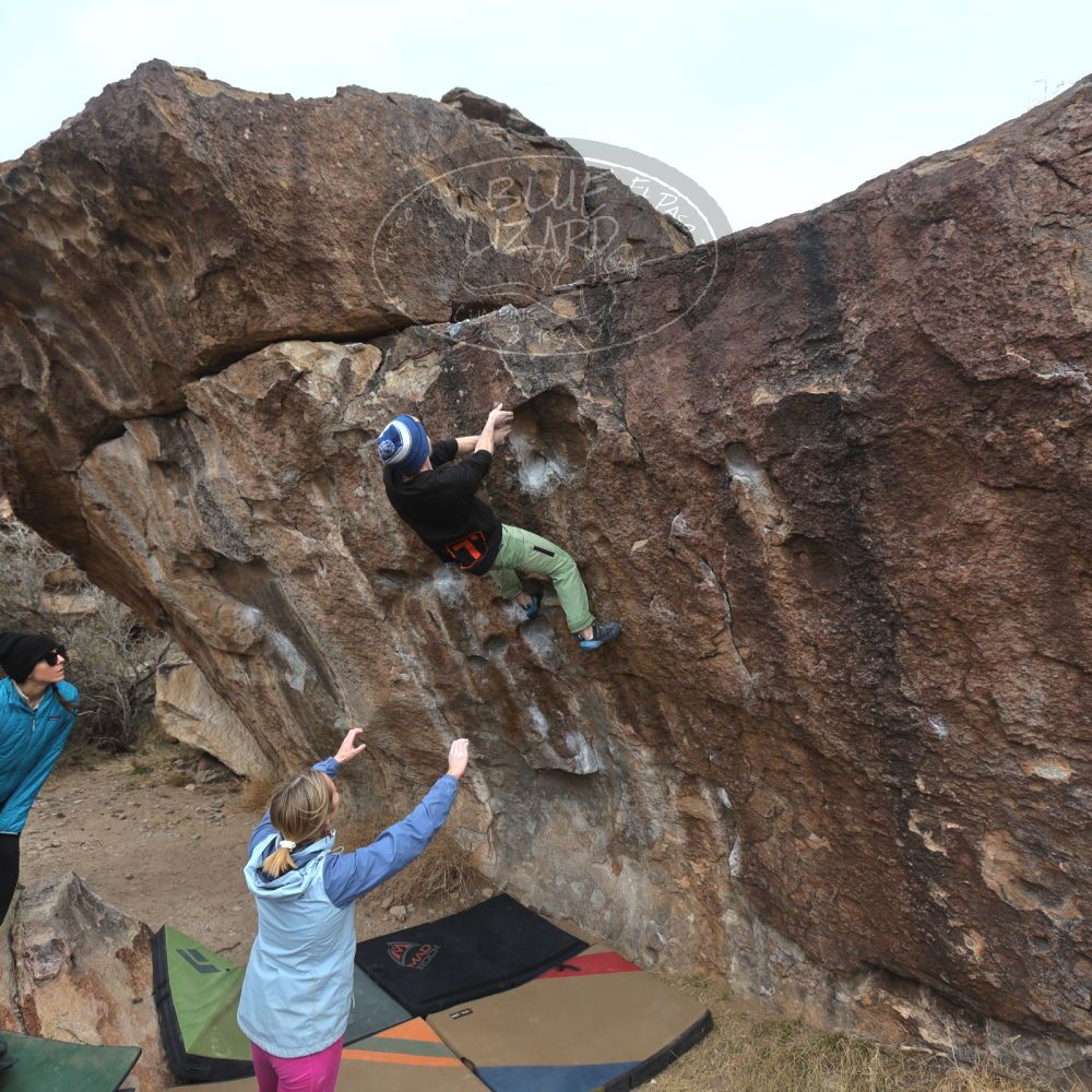 Blue Lizard Climbing and Yoga Hueco Tanks guiding on January 15, 2023, with Anthony, Fern, Ginger, Greg, Joanie, and Sophie & Kieran |
