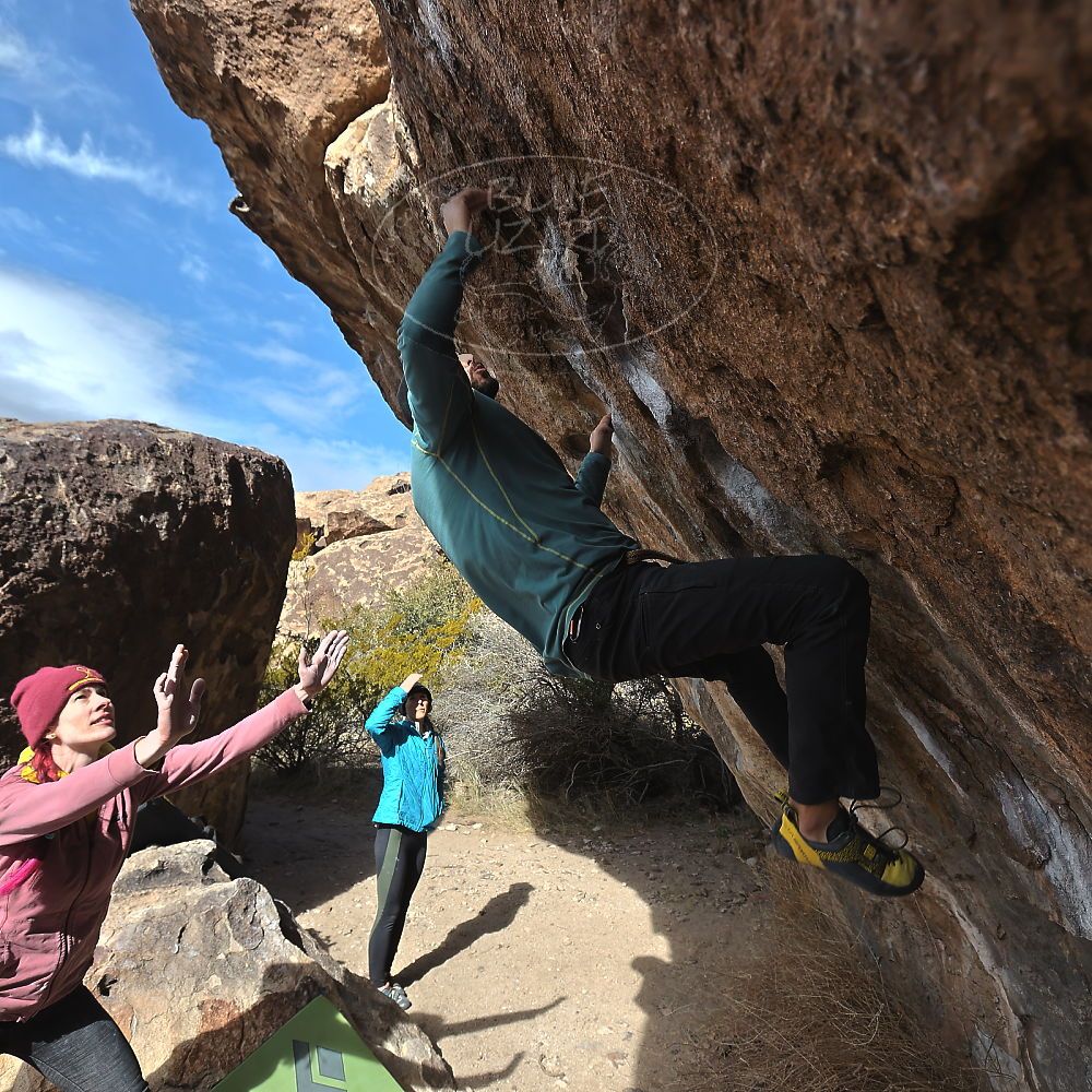 Blue Lizard Climbing and Yoga Hueco Tanks guiding on January 15, 2023, with Anthony, Fern, Ginger, Greg, Joanie, and Sophie & Kieran |