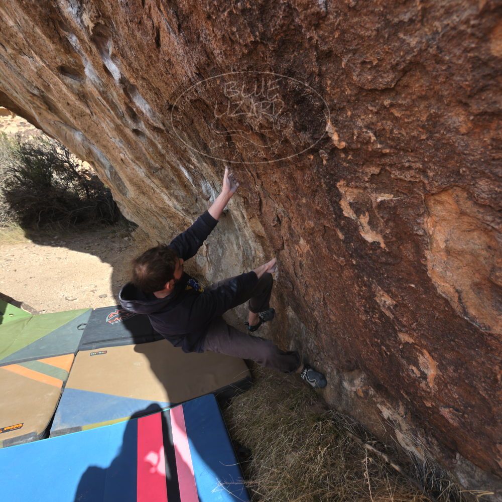 Blue Lizard Climbing and Yoga Hueco Tanks guiding on January 15, 2023, with Anthony, Fern, Ginger, Greg, Joanie, and Sophie & Kieran |