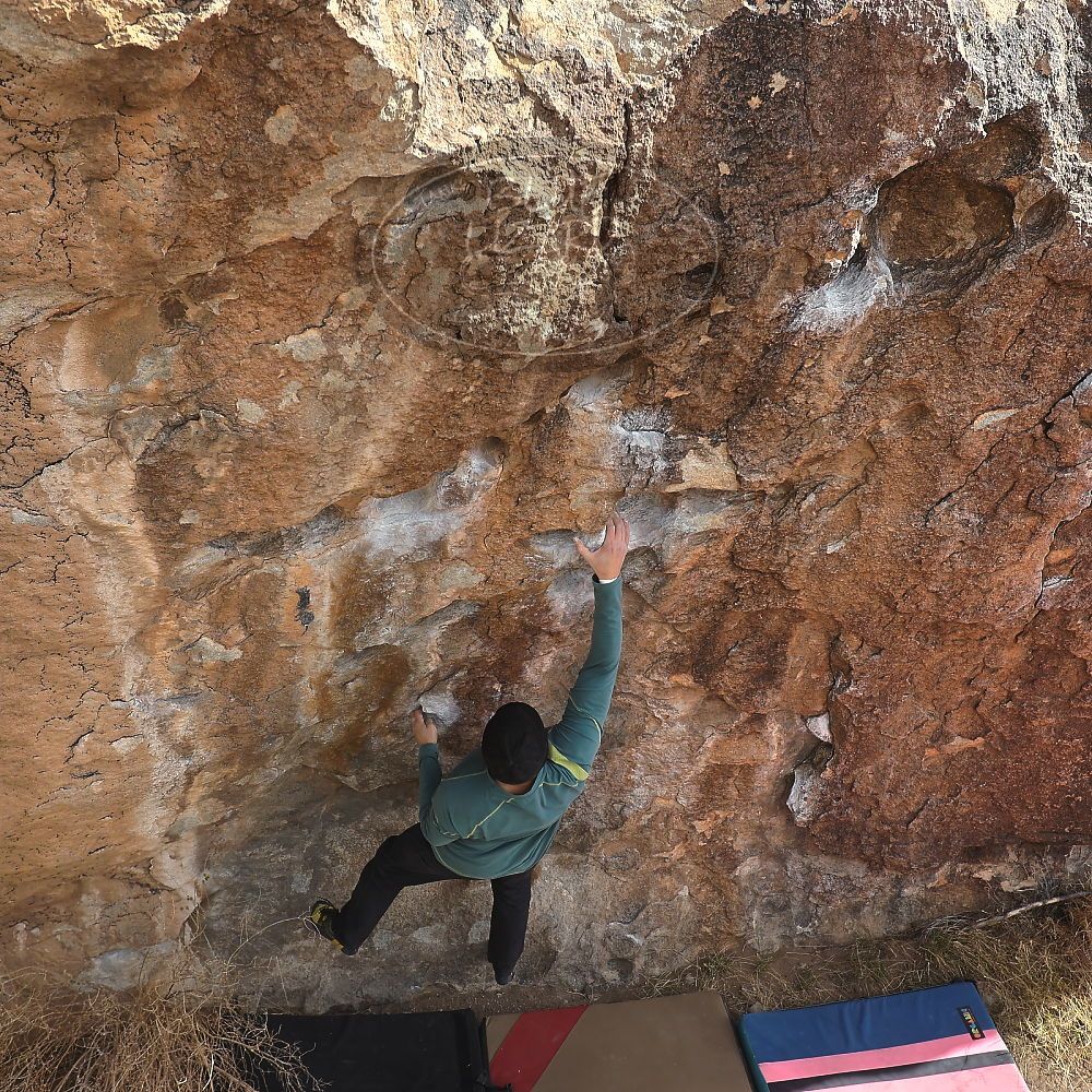 Blue Lizard Climbing and Yoga Hueco Tanks guiding on January 15, 2023, with Anthony, Fern, Ginger, Greg, Joanie, and Sophie & Kieran |