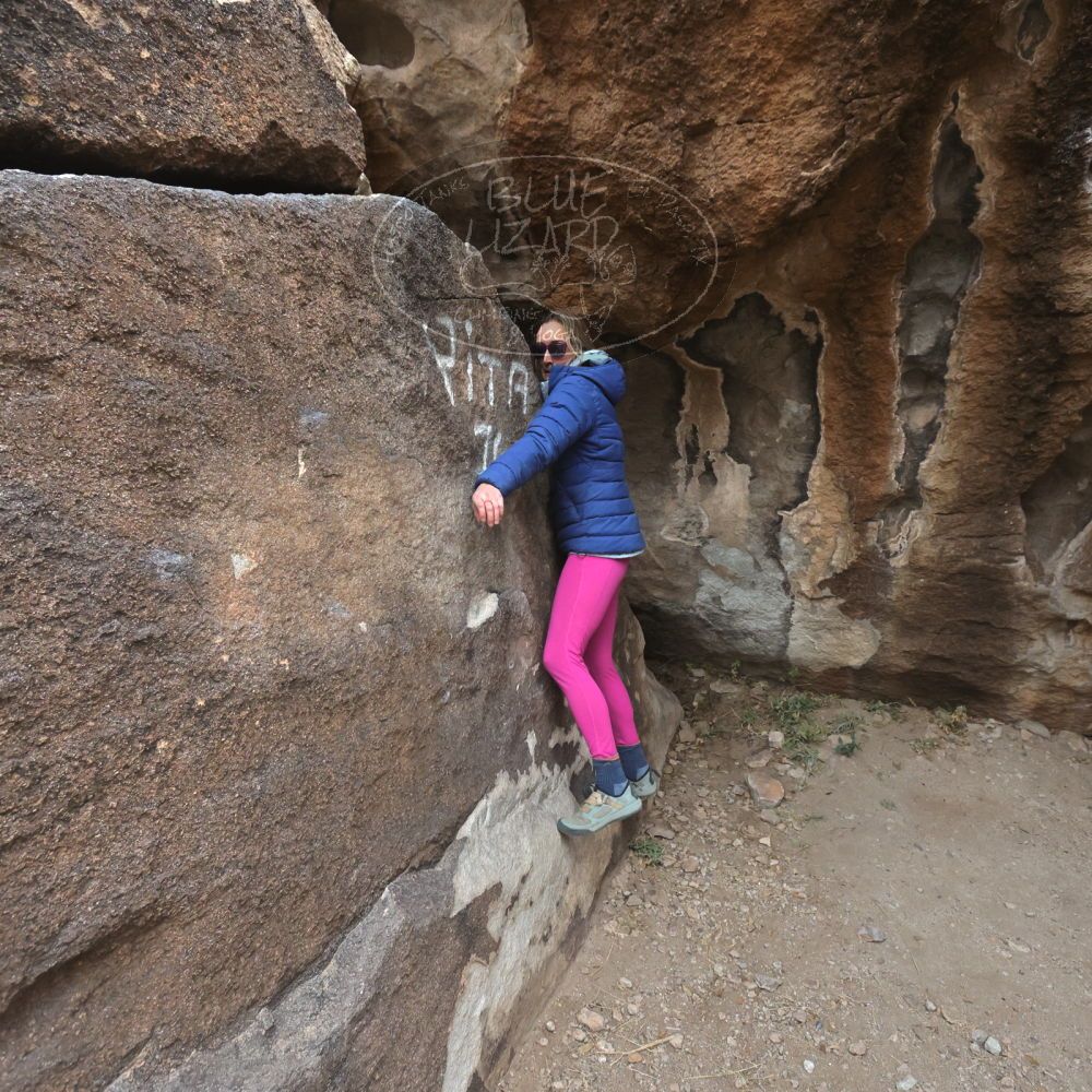 Blue Lizard Climbing and Yoga Hueco Tanks guiding on January 15, 2023, with Anthony, Fern, Ginger, Greg, Joanie, and Sophie & Kieran |