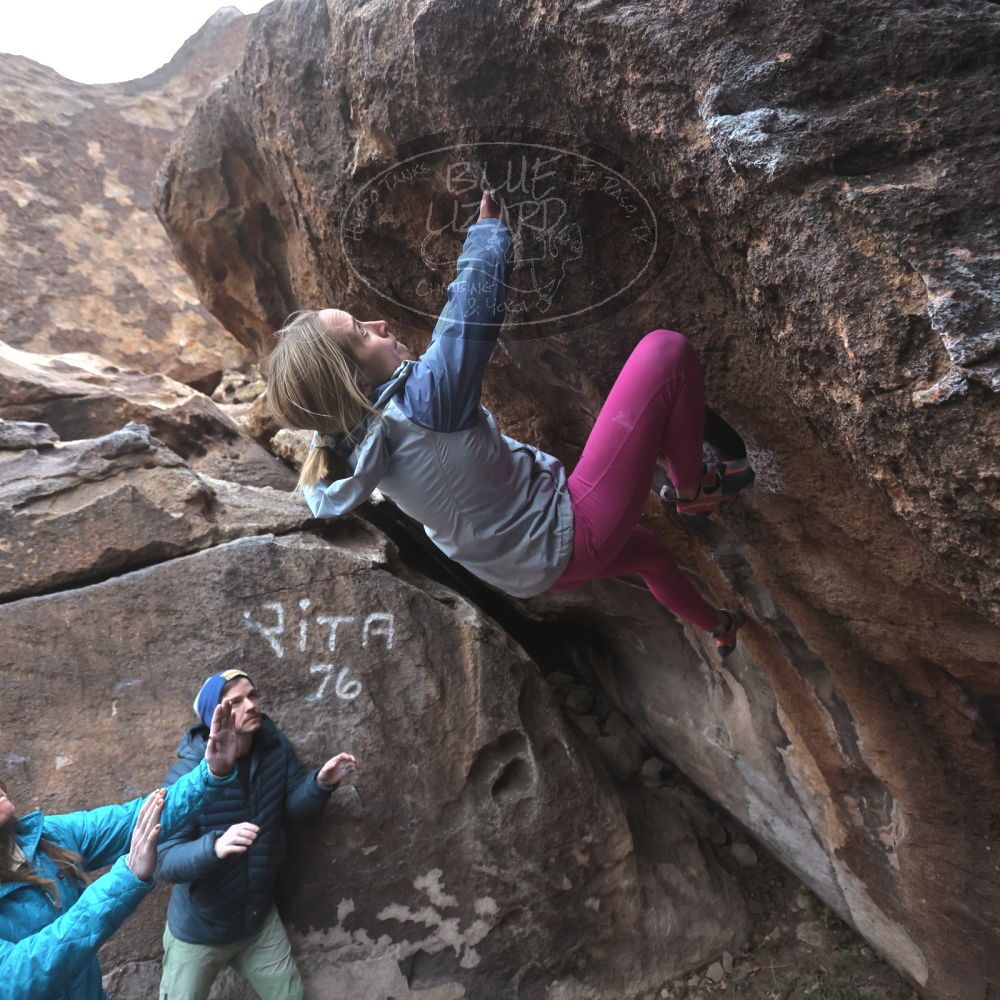 Blue Lizard Climbing and Yoga Hueco Tanks guiding on January 15, 2023, with Anthony, Fern, Ginger, Greg, Joanie, and Sophie & Kieran |