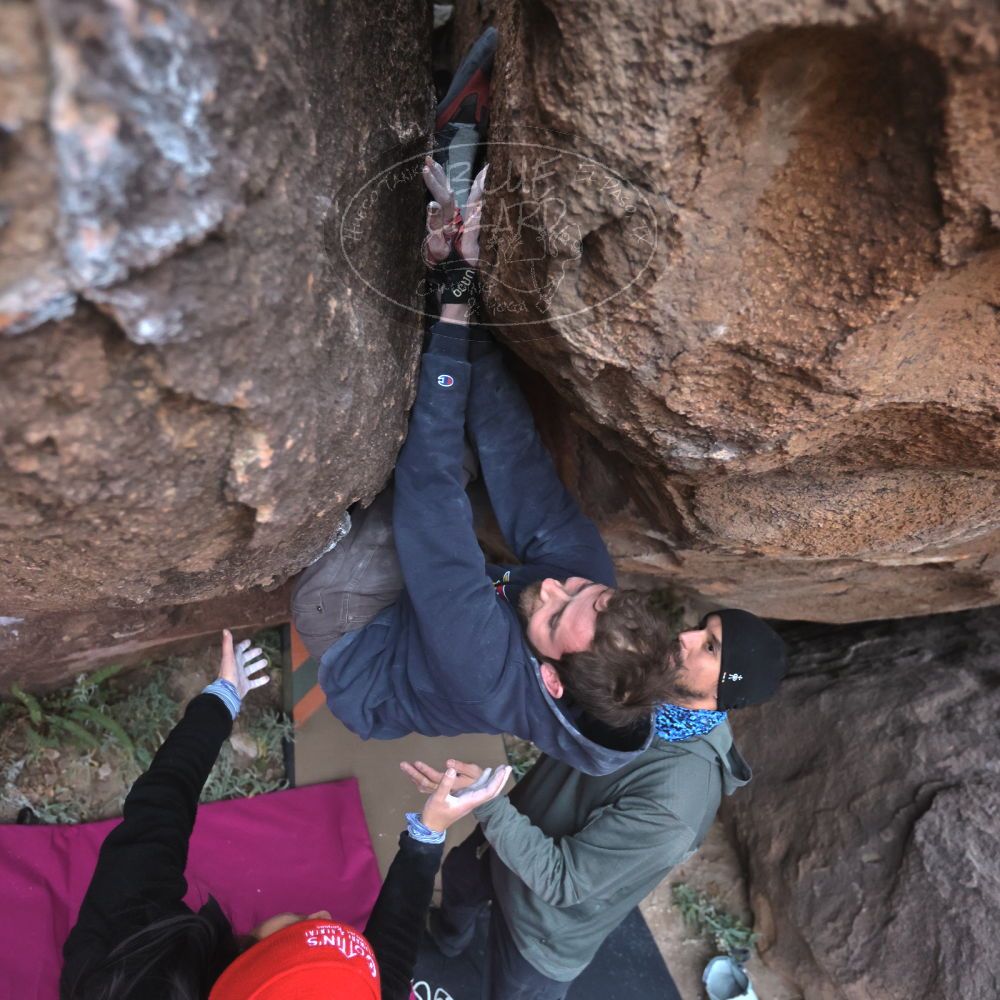 Blue Lizard Climbing and Yoga Hueco Tanks guiding on January 15, 2023, with Anthony, Fern, Ginger, Greg, Joanie, and Sophie & Kieran |