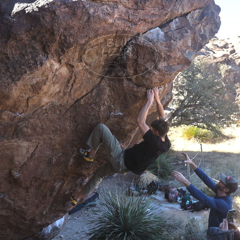 Blue Lizard Climbing and Yoga Hueco Tanks guiding on January 22, 2023 with Brian, Dave, Favia, Max, and Ozzy