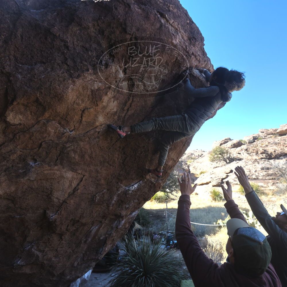 Blue Lizard Climbing and Yoga Hueco Tanks guiding on January 22, 2023 with Brian, Dave, Favia, Max, and Ozzy