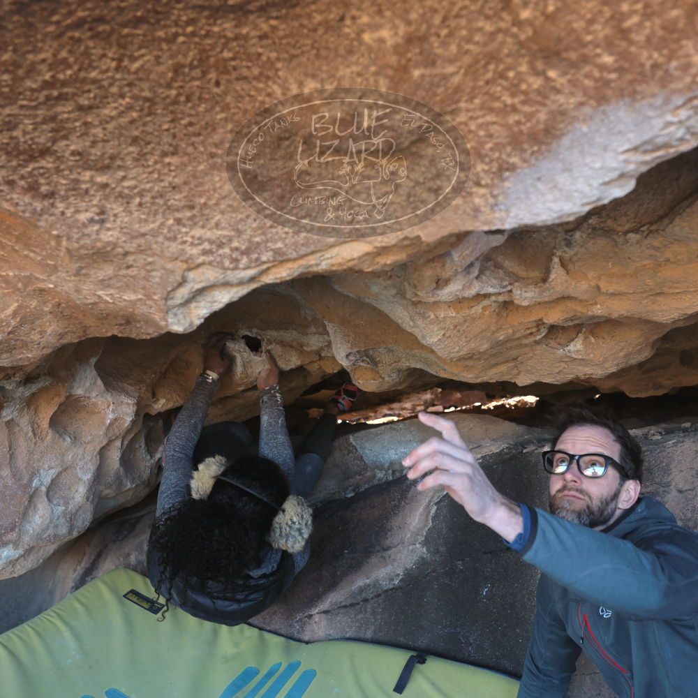 Blue Lizard Climbing and Yoga Hueco Tanks guiding on January 22, 2023 with Brian, Dave, Favia, Max, and Ozzy