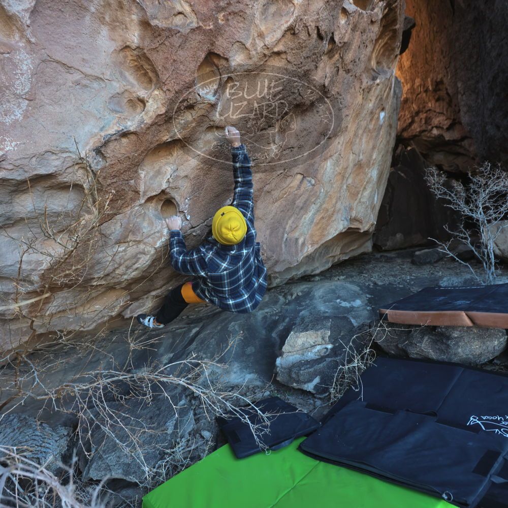 Blue Lizard Climbing and Yoga Hueco Tanks guiding on January 22, 2023 with Brian, Dave, Favia, Max, and Ozzy