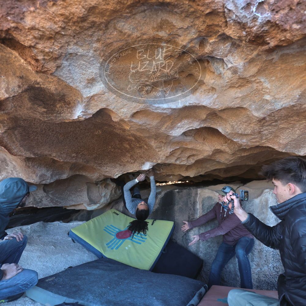 Blue Lizard Climbing and Yoga Hueco Tanks guiding on January 22, 2023 with Brian, Dave, Favia, Max, and Ozzy