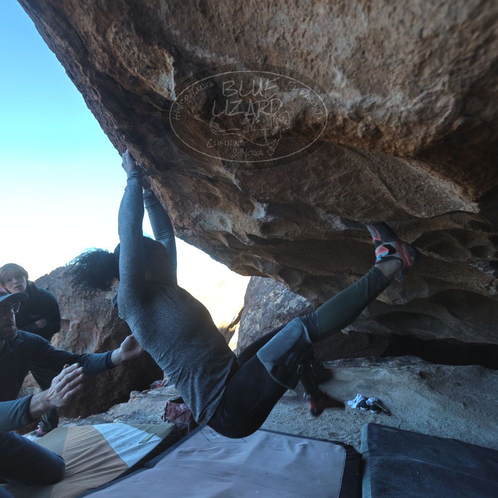 Blue Lizard Climbing and Yoga Hueco Tanks guiding on January 22, 2023 with Brian, Dave, Favia, Max, and Ozzy