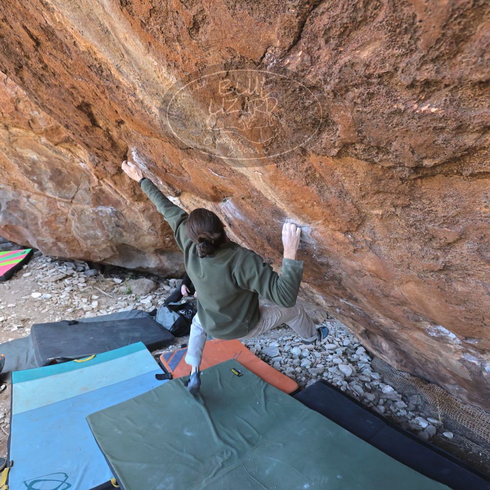Blue Lizard Climbing and Yoga Hueco Tanks guiding on January 28, 2023, with Forrest, Jerome, Keith, and Neil