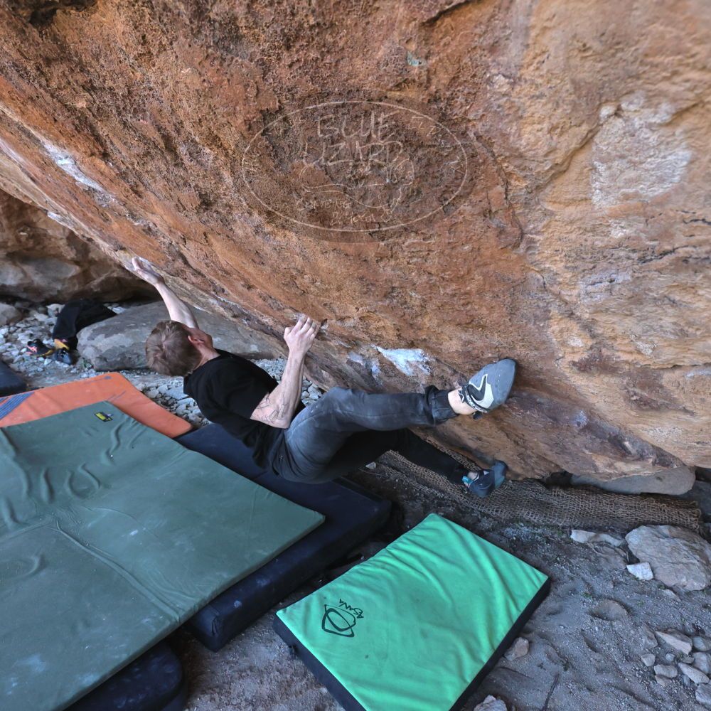 Blue Lizard Climbing and Yoga Hueco Tanks guiding on January 28, 2023, with Austin, Canon, Holden, Liam, Luke
