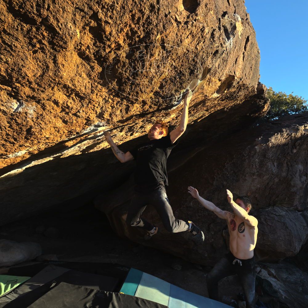 Blue Lizard Climbing and Yoga Hueco Tanks guiding on January 29, 2023, with Jerome, Austin, Canon, Holden, Liam, and Luke |