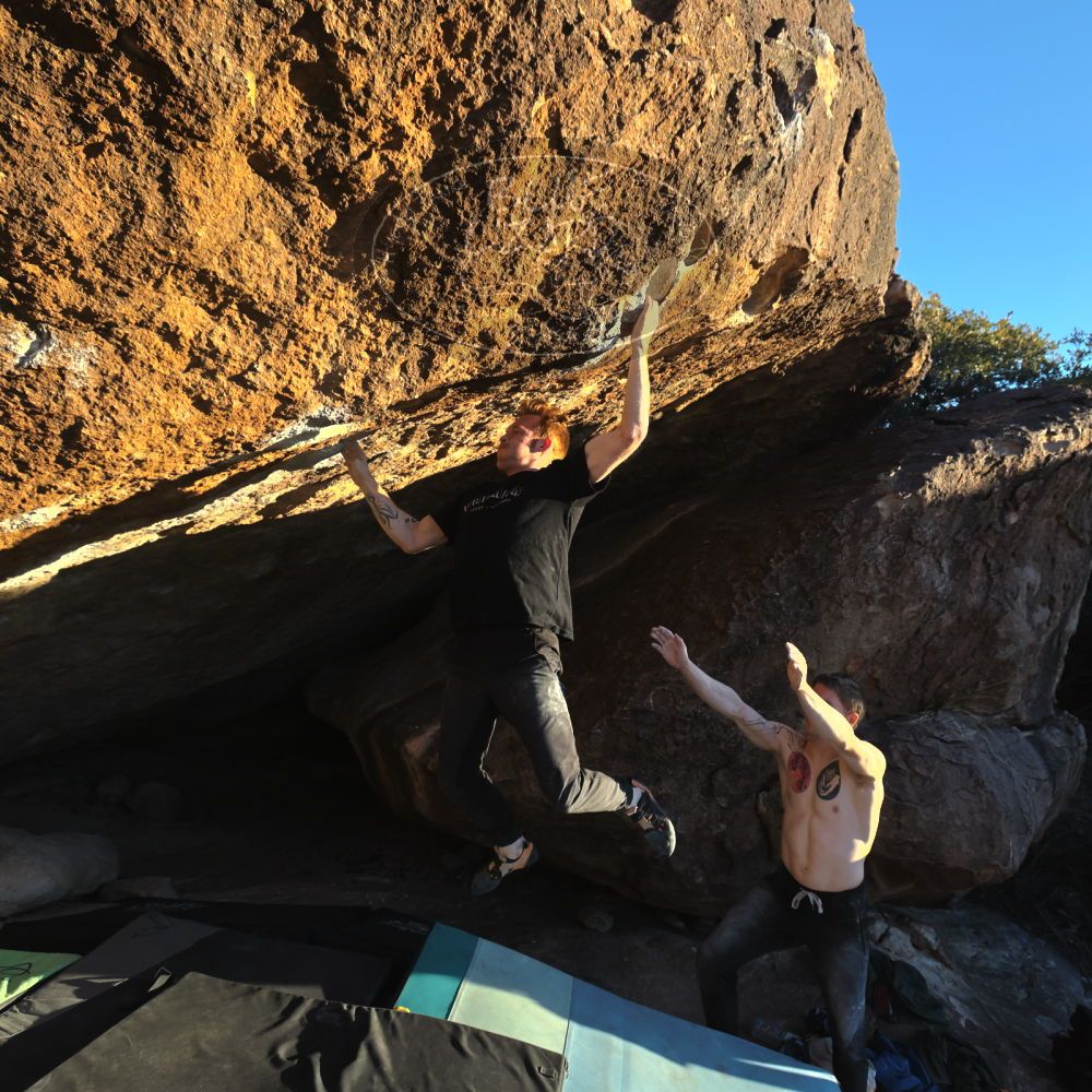 Blue Lizard Climbing and Yoga Hueco Tanks guiding on January 29, 2023, with Jerome, Austin, Canon, Holden, Liam, and Luke |