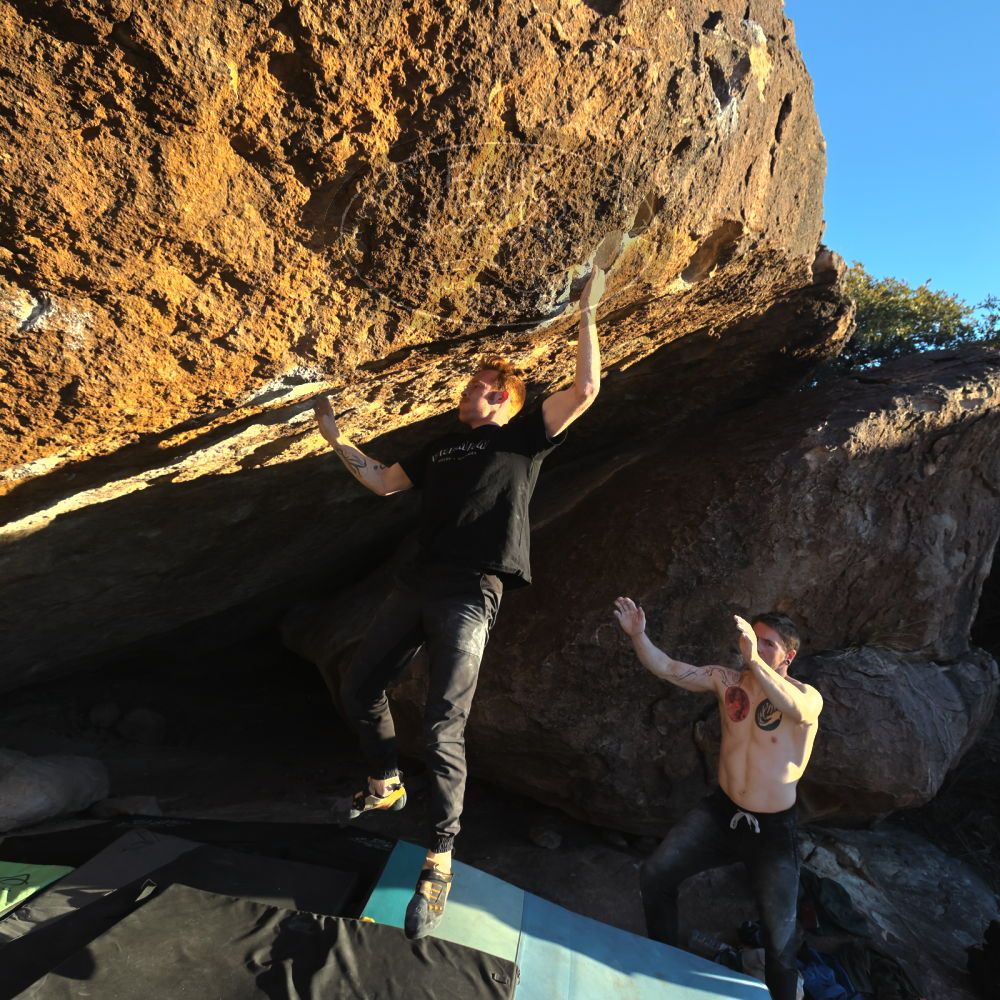 Blue Lizard Climbing and Yoga Hueco Tanks guiding on January 29, 2023, with Jerome, Austin, Canon, Holden, Liam, and Luke |