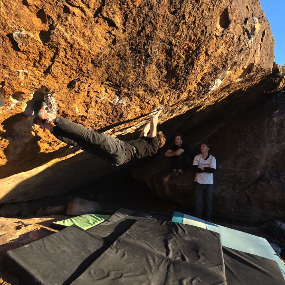 Blue Lizard Climbing and Yoga Hueco Tanks guiding on January 29, 2023, with Jerome, Austin, Canon, Holden, Liam, and Luke |