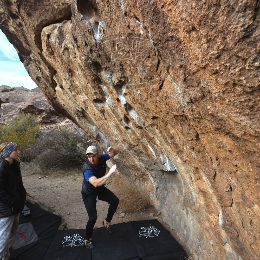 Blue Lizard Climbing and Yoga Hueco Tanks guiding on February 17, 2023, with Amelia, Crystal, Megan, and Steven