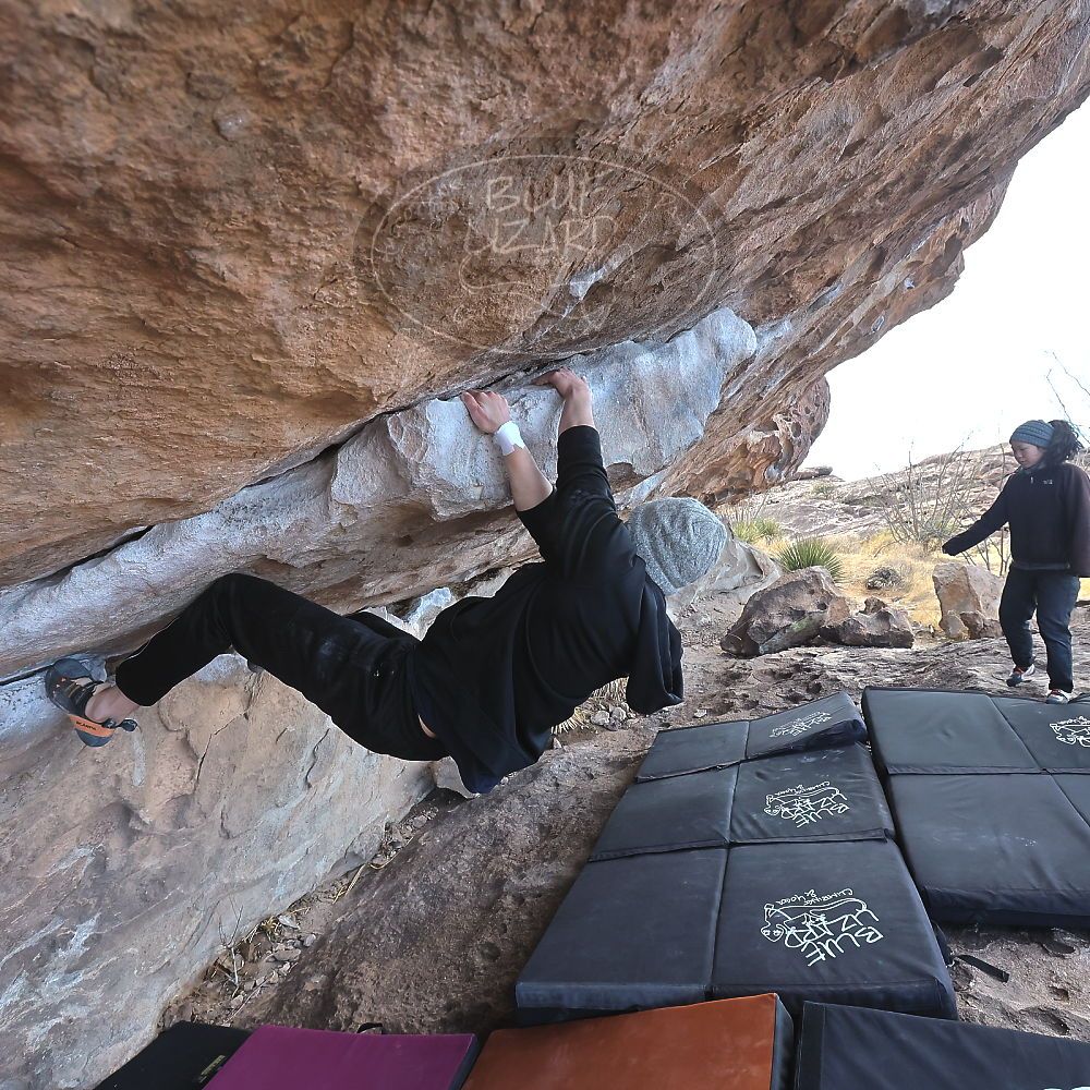Blue Lizard Climbing and Yoga Hueco Tanks guiding on February 22, 2023, with Joe, Katia & Alfredo, Michael, Rachel, Rich, and Roy |