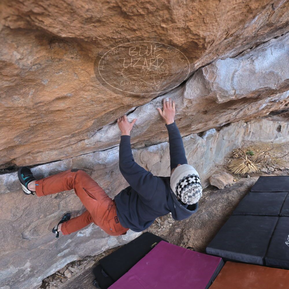 Blue Lizard Climbing and Yoga Hueco Tanks guiding on February 22, 2023, with Joe, Katia & Alfredo, Michael, Rachel, Rich, and Roy |