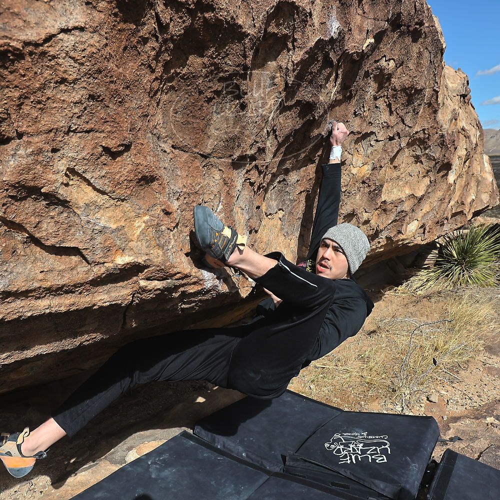 Blue Lizard Climbing and Yoga Hueco Tanks guiding on February 22, 2023, with Joe, Katia & Alfredo, Michael, Rachel, Rich, and Roy |