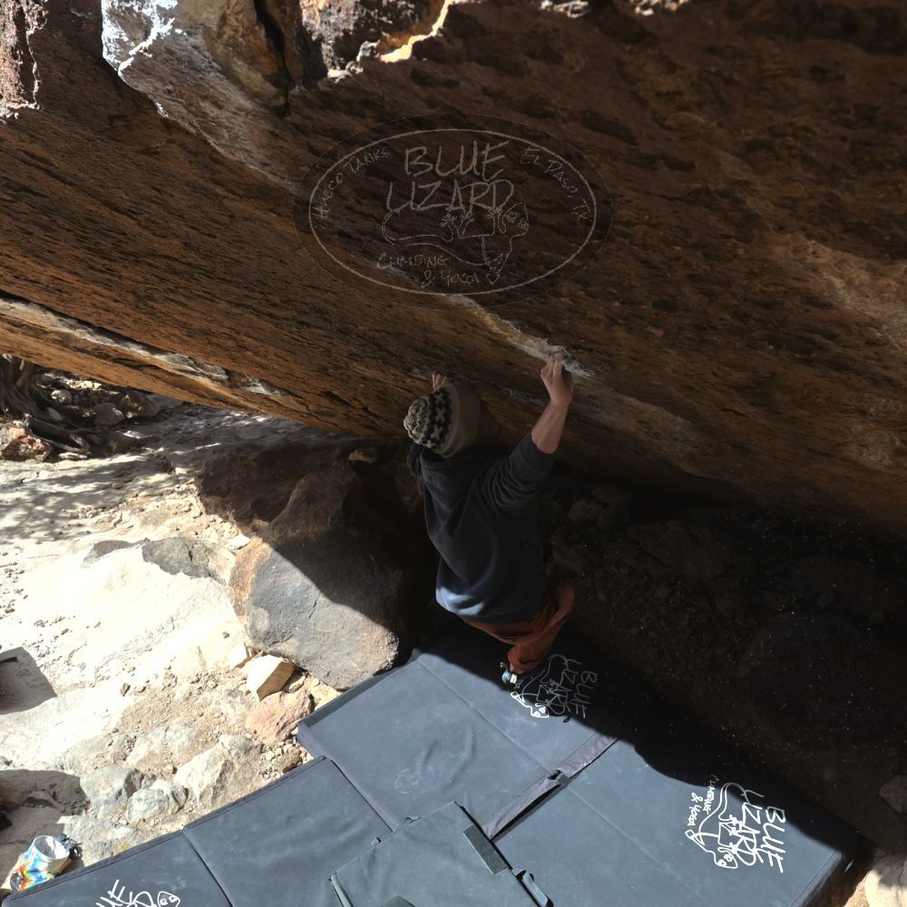 Blue Lizard Climbing and Yoga Hueco Tanks guiding on February 22, 2023, with Joe, Katia & Alfredo, Michael, Rachel, Rich, and Roy |