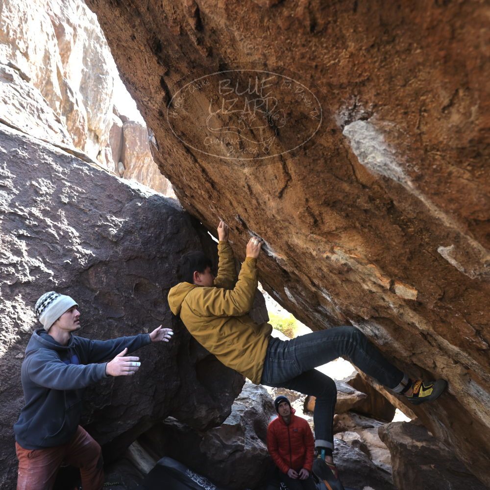 Blue Lizard Climbing and Yoga Hueco Tanks guiding on February 22, 2023, with Joe, Katia & Alfredo, Michael, Rachel, Rich, and Roy |