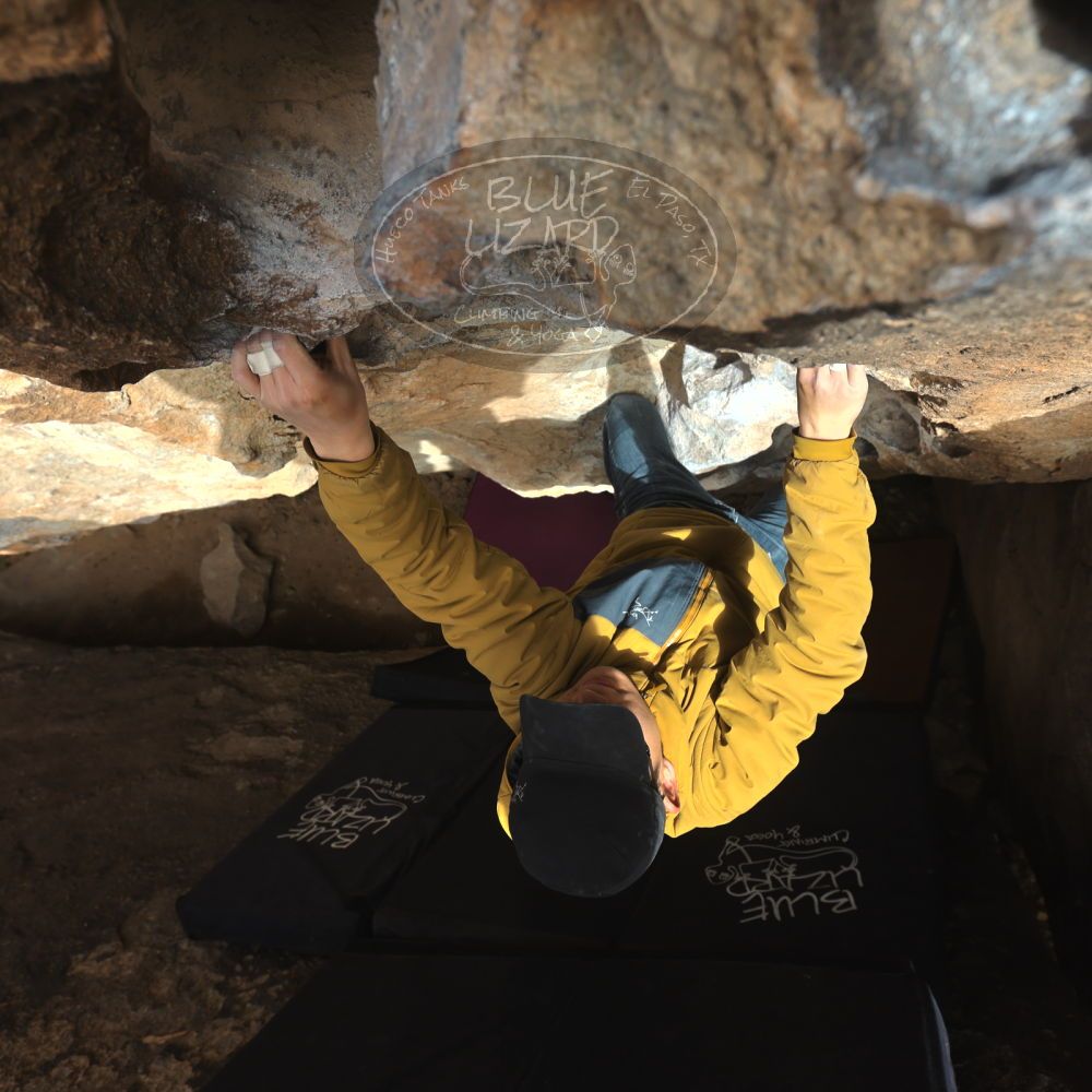 Blue Lizard Climbing and Yoga Hueco Tanks guiding on February 22, 2023, with Joe, Katia & Alfredo, Michael, Rachel, Rich, and Roy |