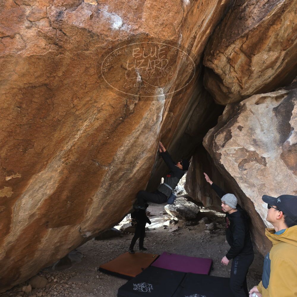 Blue Lizard Climbing and Yoga Hueco Tanks guiding on February 22, 2023, with Joe, Katia & Alfredo, Michael, Rachel, Rich, and Roy |