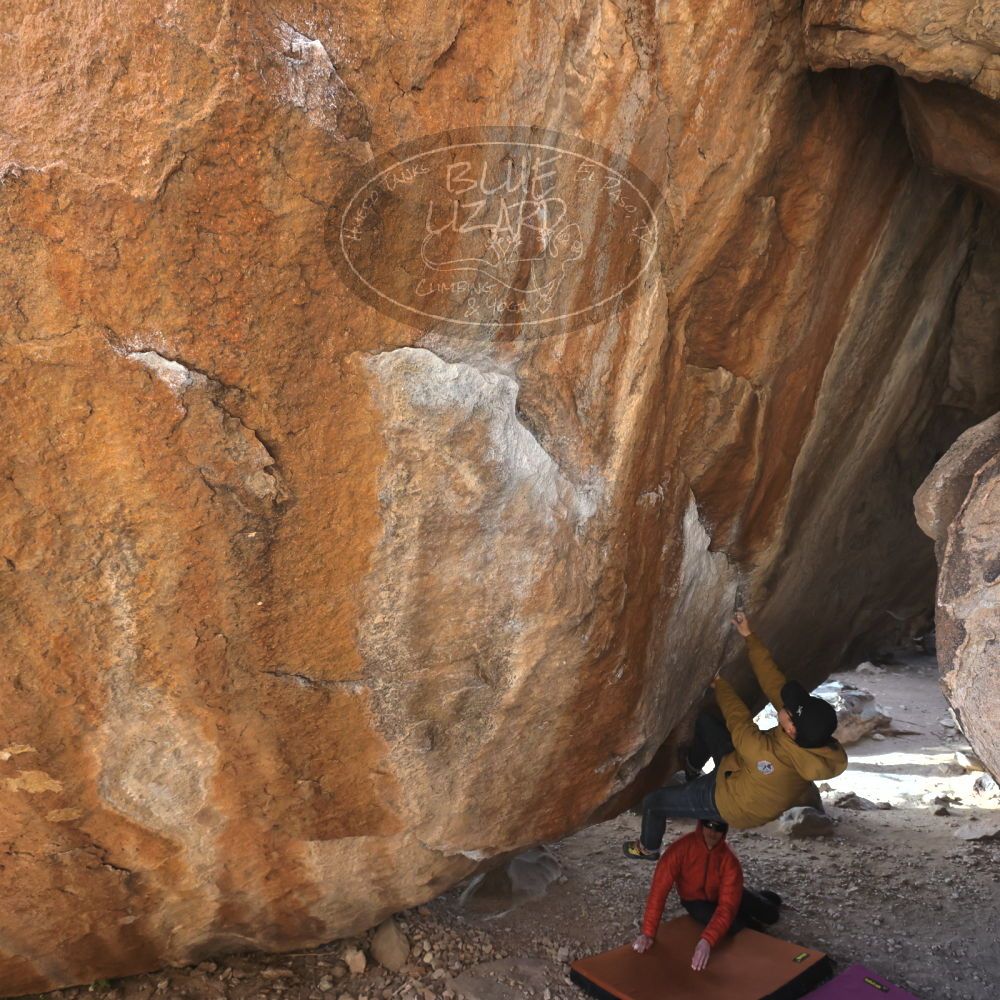 Blue Lizard Climbing and Yoga Hueco Tanks guiding on February 22, 2023, with Joe, Katia & Alfredo, Michael, Rachel, Rich, and Roy |