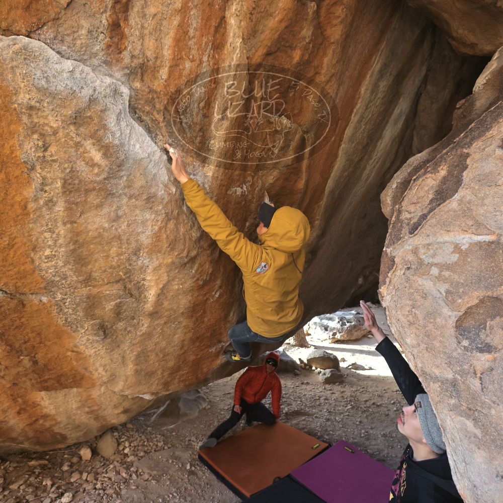 Blue Lizard Climbing and Yoga Hueco Tanks guiding on February 22, 2023, with Joe, Katia & Alfredo, Michael, Rachel, Rich, and Roy |