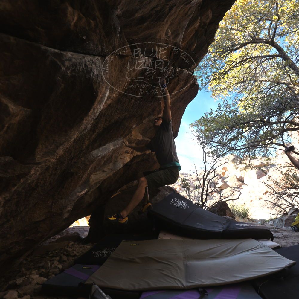 Blue Lizard Climbing and Yoga Hueco Tanks guiding on March 10, 2023, with Fabian, Michael, and Richard