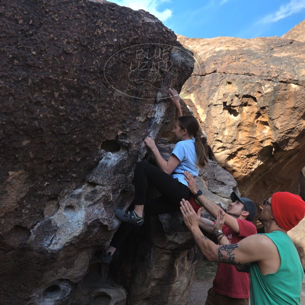 Blue Lizard Climbing and Yoga Hueco Tanks guiding on March 15, 2023 with Alex; Ariel, Beckett, Laurel, Luke, Marin, and Rhett; Laura; Maggie and Kevin |