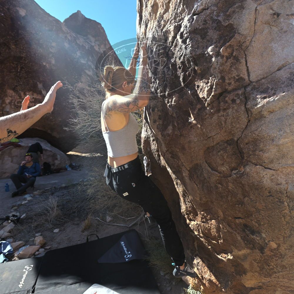 Blue Lizard Climbing and Yoga Hueco Tanks guiding on November 24, 2023 with Matt, Matteo, Morgan, Riki, and Zarrick