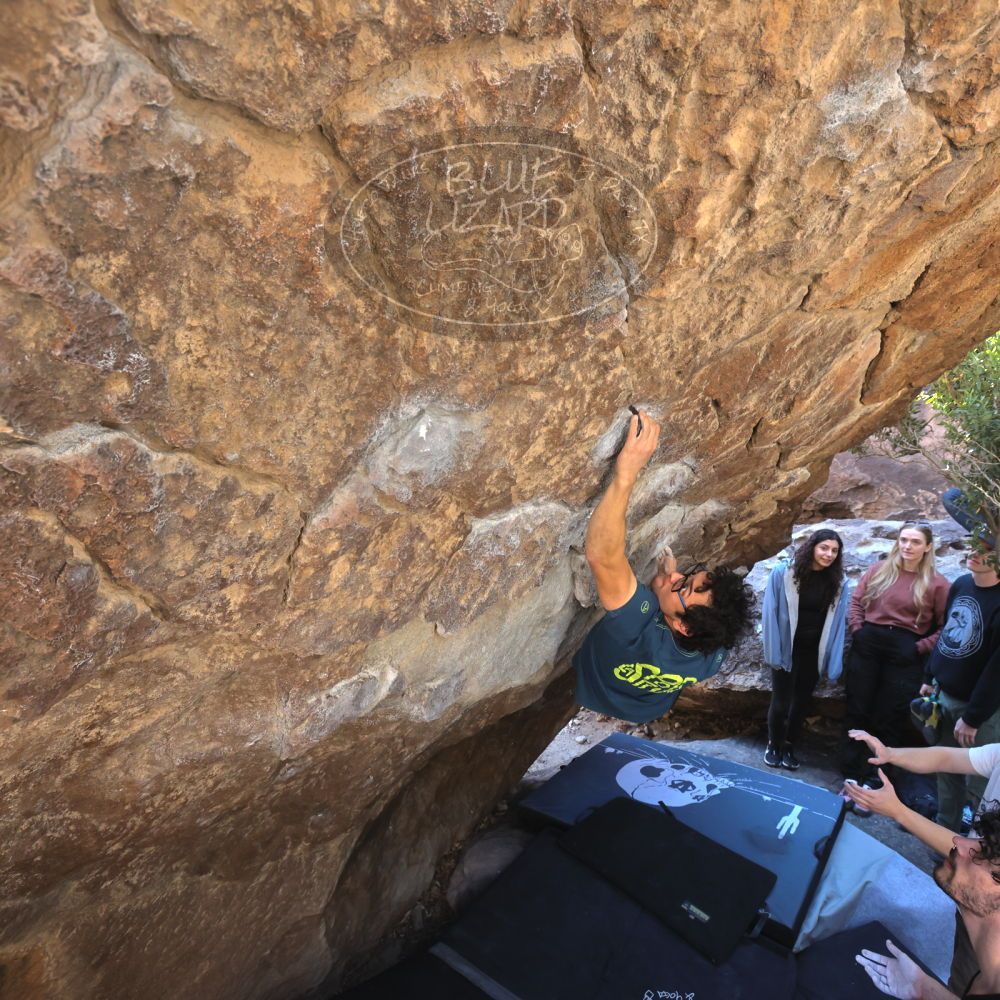 Blue Lizard Climbing and Yoga Hueco Tanks guiding on November 24, 2023 with Matt, Matteo, Morgan, Riki, and Zarrick