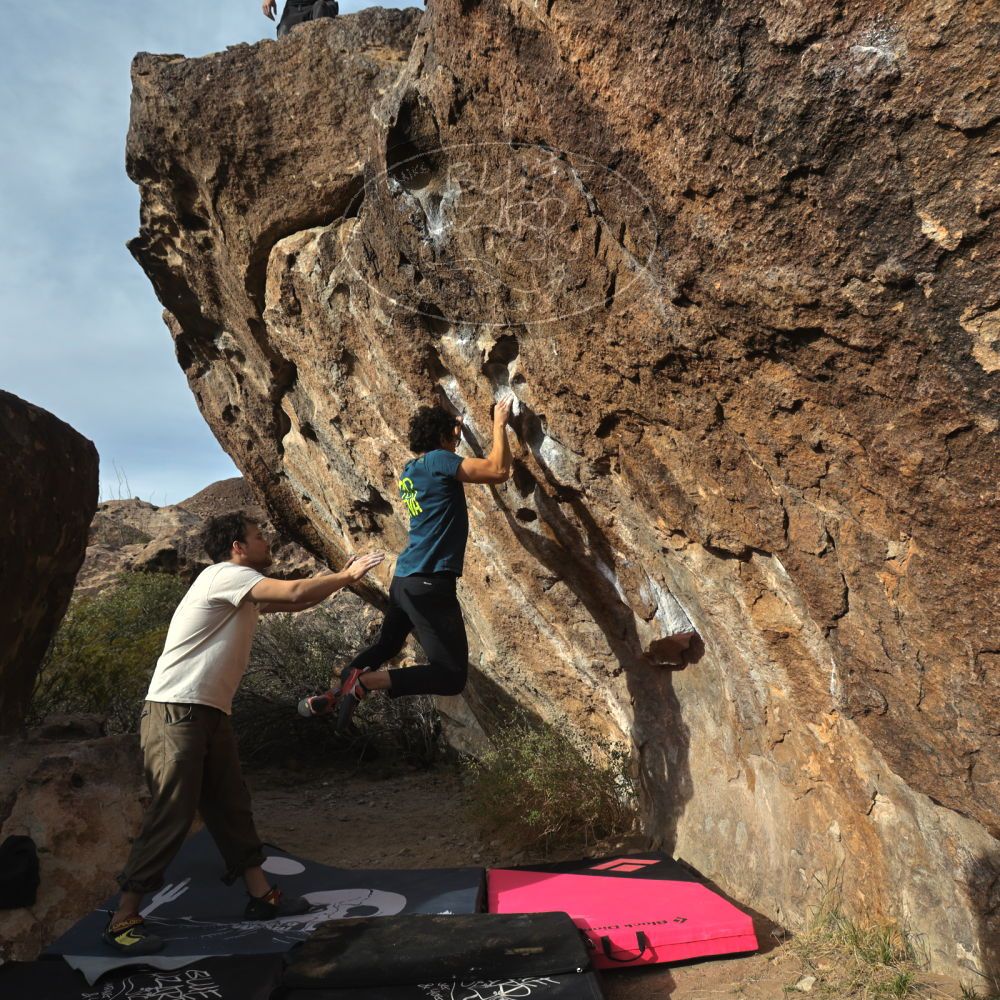 Blue Lizard Climbing and Yoga Hueco Tanks guiding on November 24, 2023 with Matt, Matteo, Morgan, Riki, and Zarrick