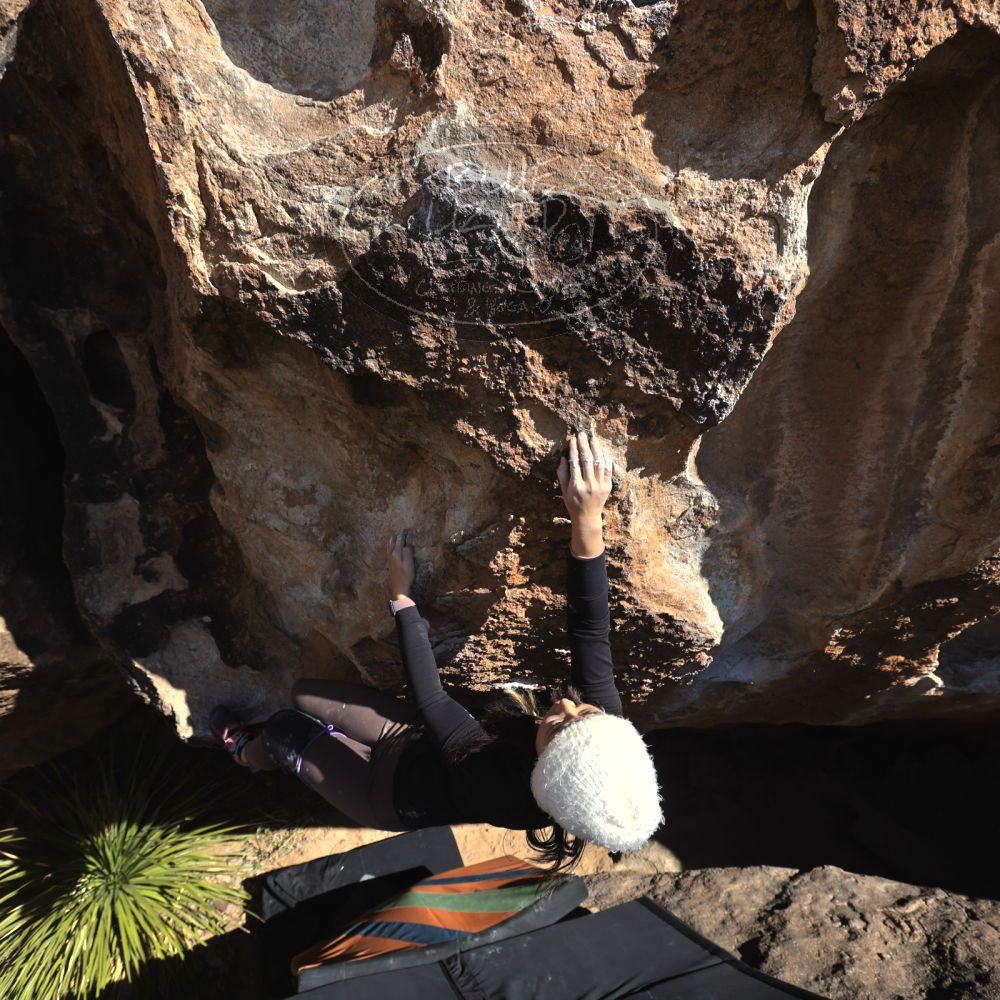 Blue Lizard Climbing and Yoga Hueco Tanks guiding on November 25, 2023, with Julie & Ryan, Megan & David, and Sophia