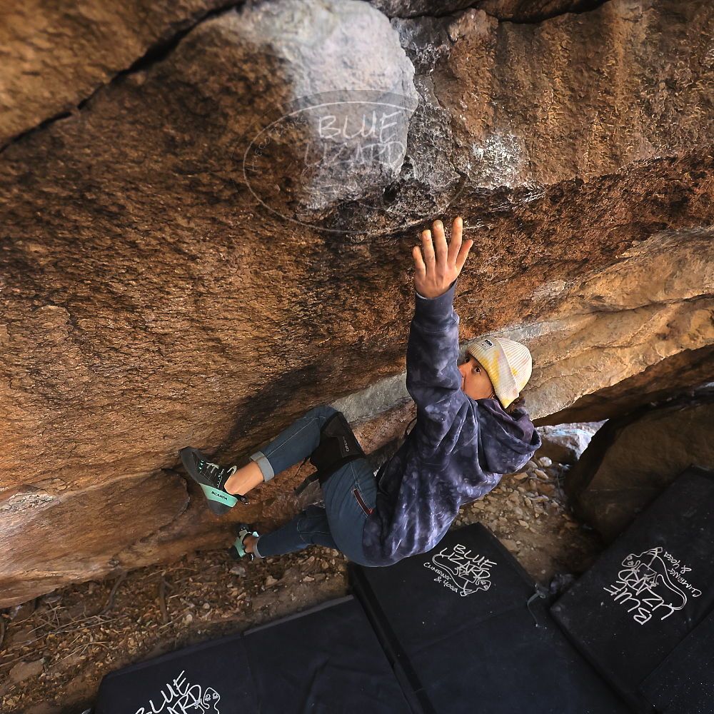 Blue Lizard Climbing and Yoga Hueco Tanks guiding on December 10, 2023, with Cathy, Chey & Em, Jay, Nick K, and Nick P