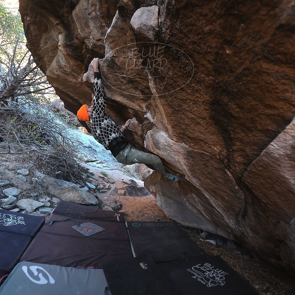 Blue Lizard Climbing and Yoga Hueco Tanks guiding on December 10, 2023, with Cathy, Chey & Em, Jay, Nick K, and Nick P