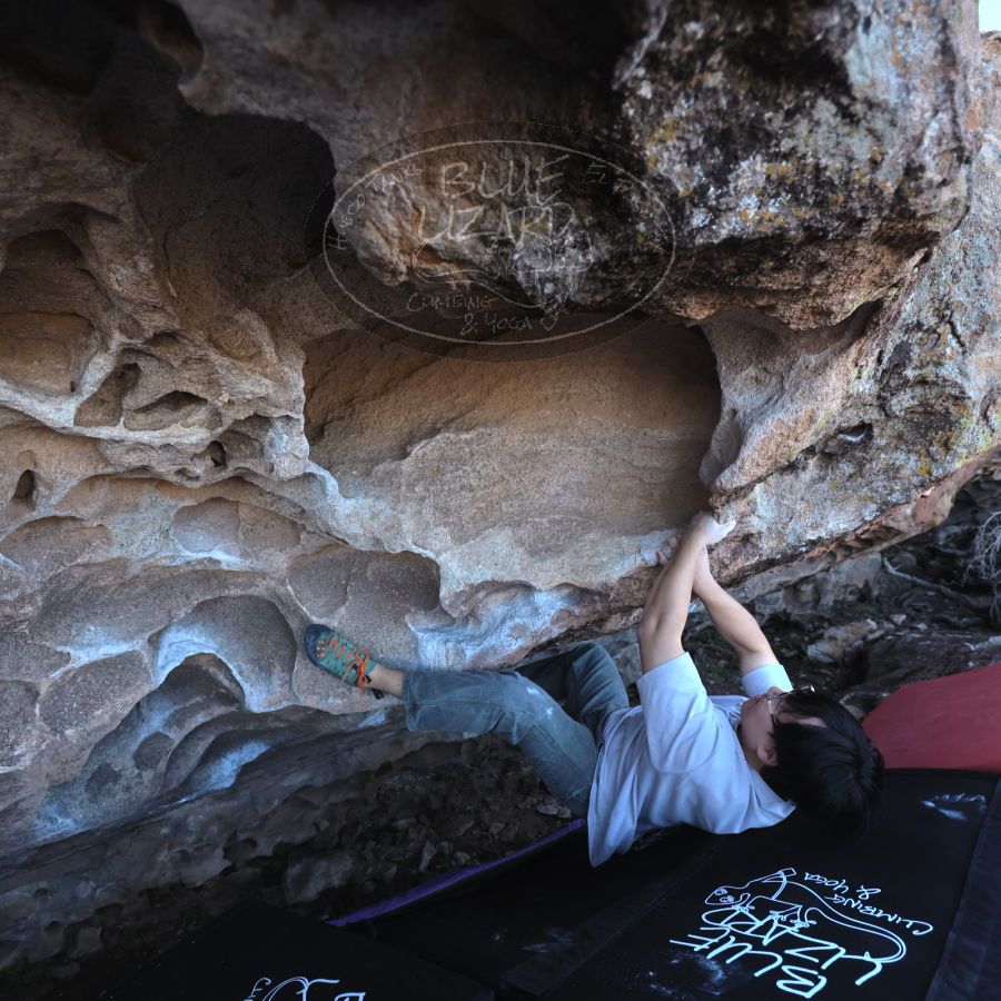 Blue Lizard Climbing and Yoga Hueco Tanks guiding on December 22, 2023, with Bijou & Joonou, Jack, Natalie & Byron, Sean, and Tim |