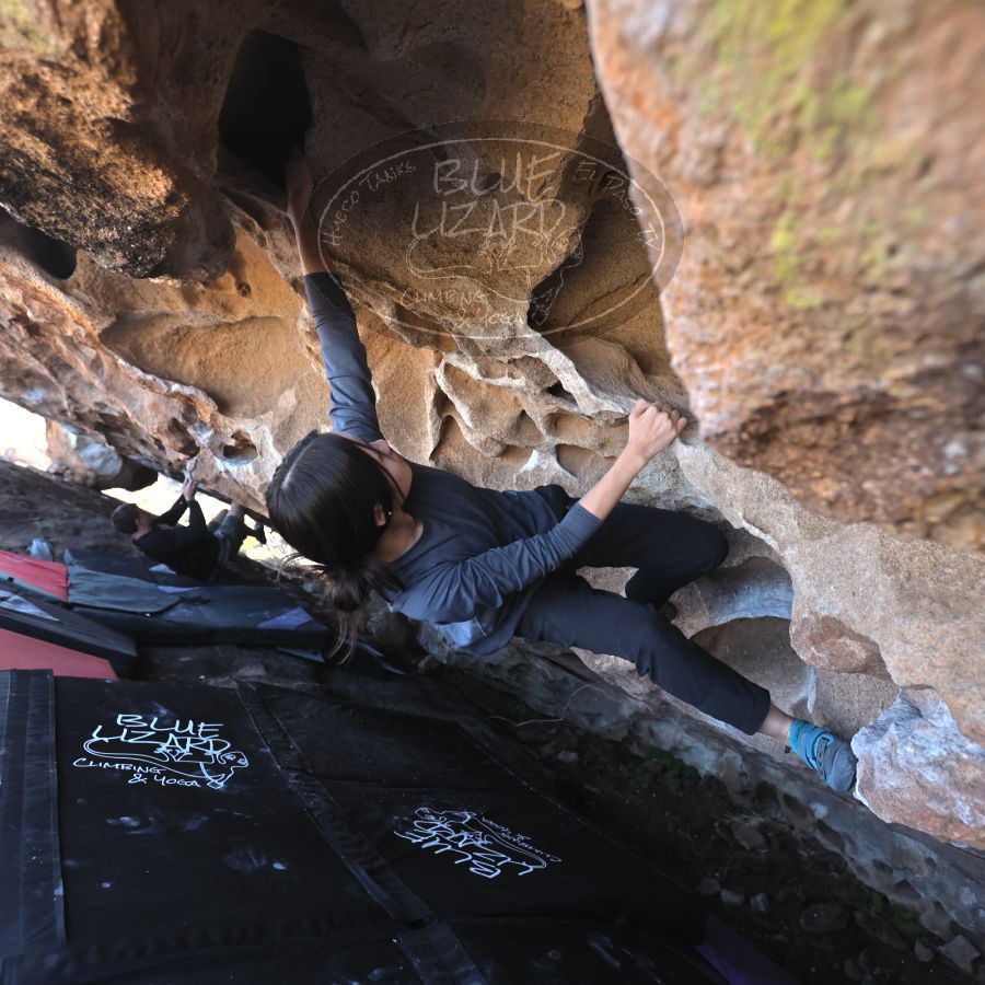 Blue Lizard Climbing and Yoga Hueco Tanks guiding on December 22, 2023, with Bijou & Joonou, Jack, Natalie & Byron, Sean, and Tim |