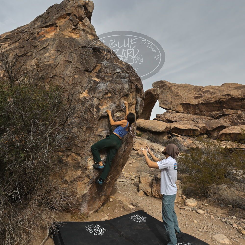 Blue Lizard Climbing and Yoga Hueco Tanks guiding on February 26, 2024, with Belle, Dan, Matt, Nick, and Nick P