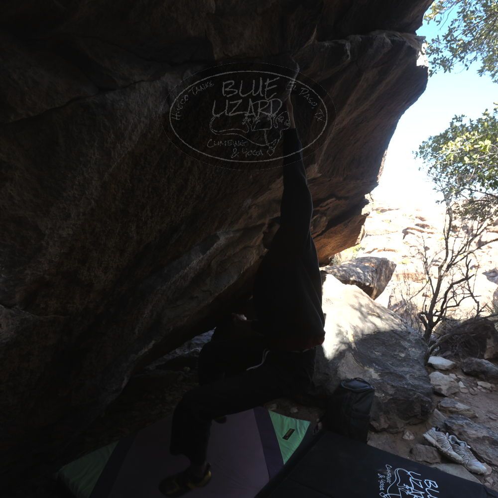 Blue Lizard Climbing and Yoga Hueco Tanks guiding on March 12, 2024, with Jasper, Maria, Mark, and Tash