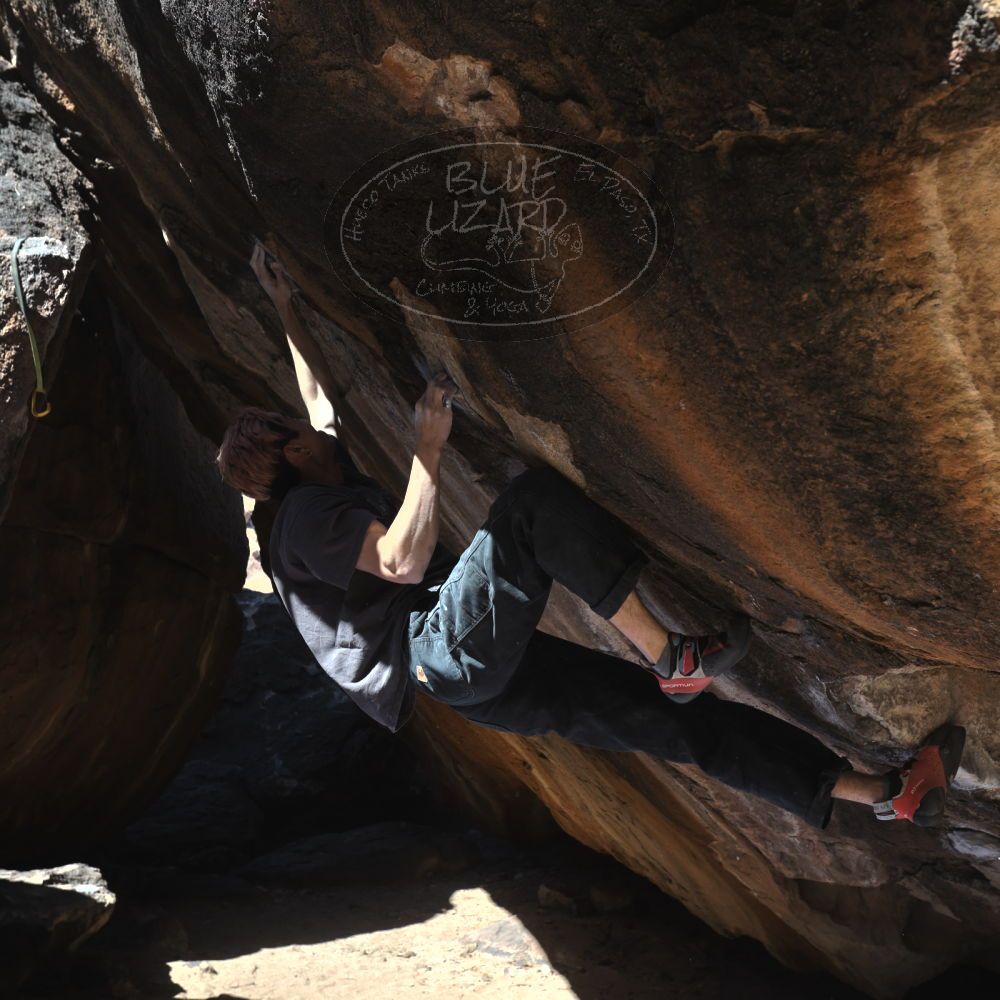 Blue Lizard Climbing and Yoga Hueco Tanks guiding on March 12, 2024, with Alex, Andrew, Brian, and Diego