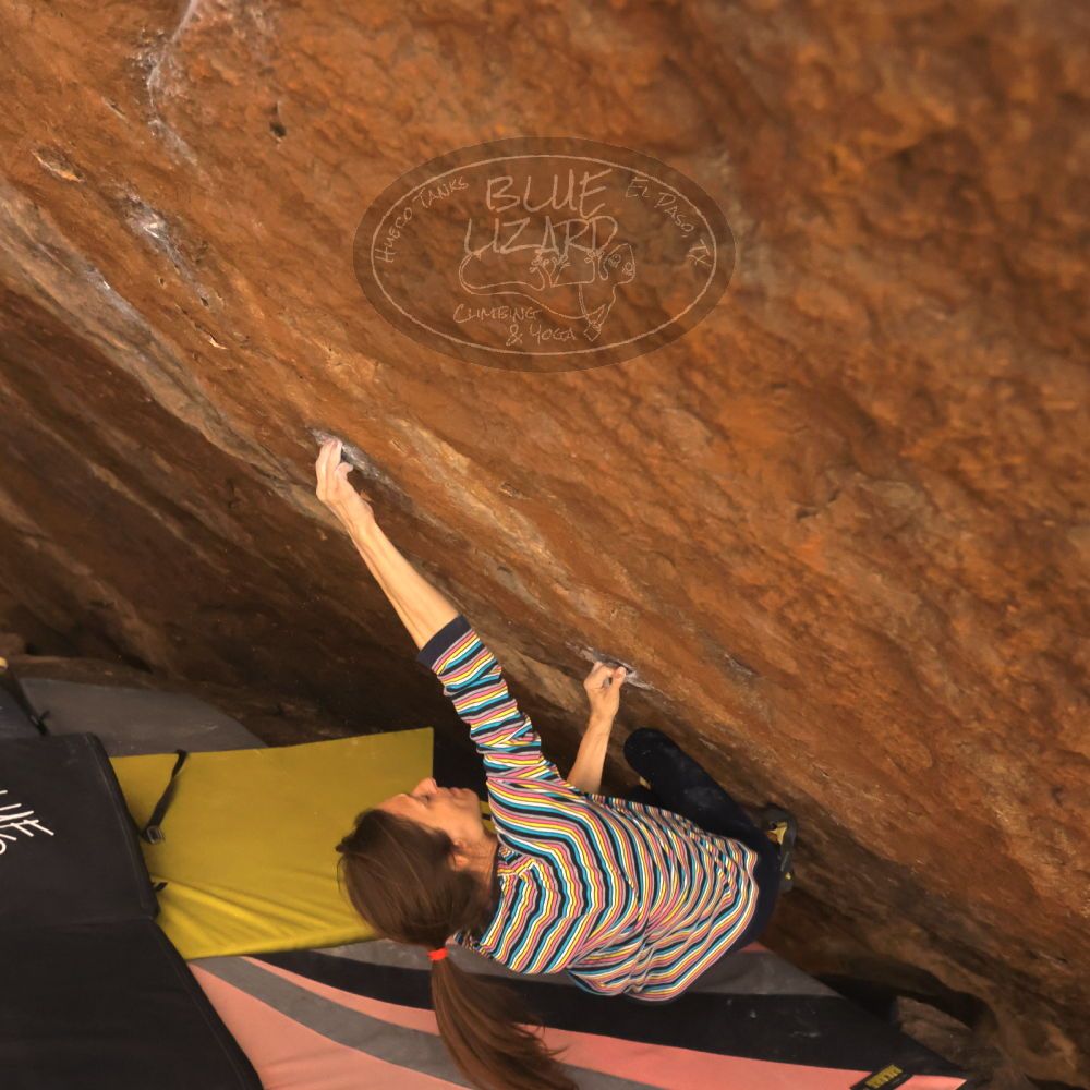 Blue Lizard Climbing and Yoga Hueco Tanks guiding on March 17, 2024, with Mike, Tim, Trace, and Wendy