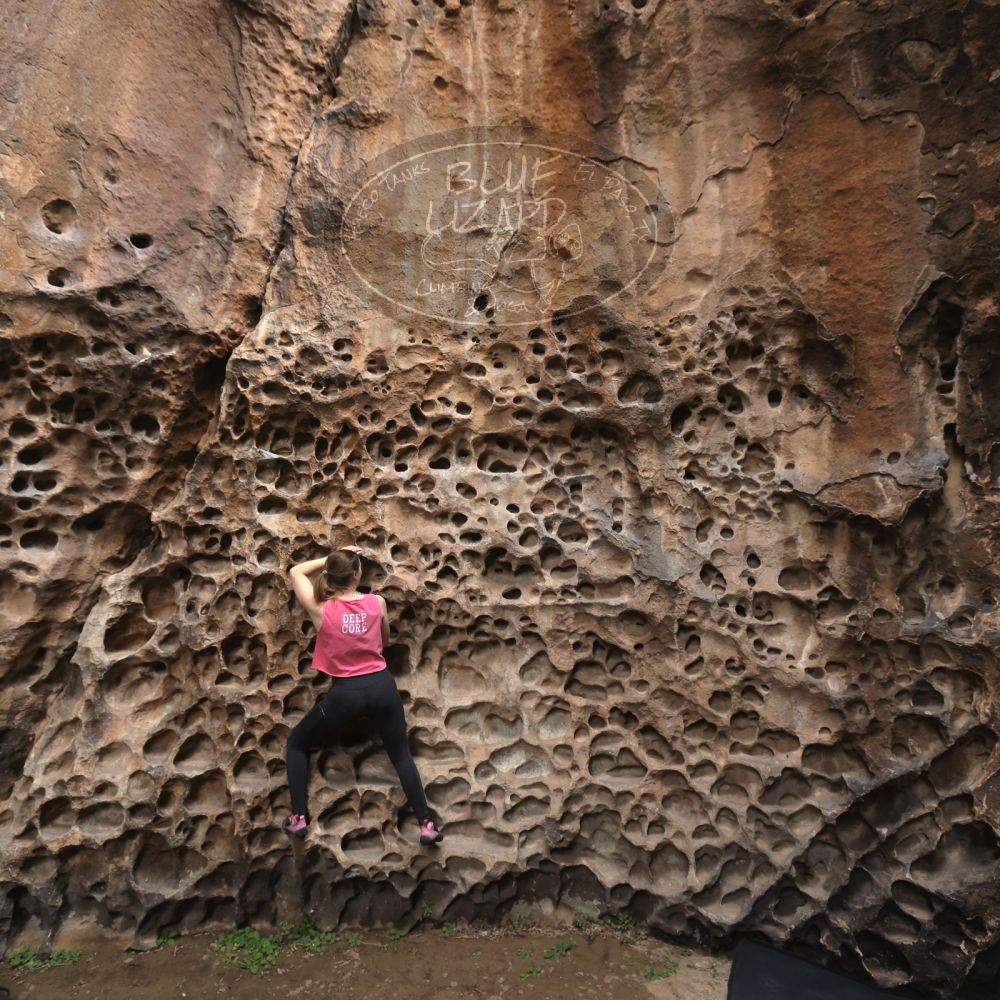 Blue Lizard Climbing and Yoga Hueco Tanks guiding on March 31, 2024, with Alayna, Allison, Becca, Elli, and Julia