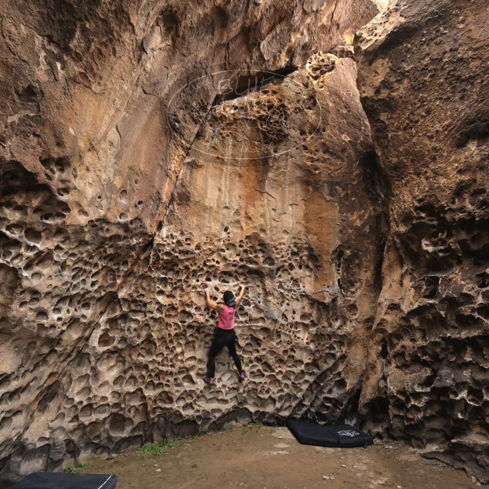 Blue Lizard Climbing and Yoga Hueco Tanks guiding on March 31, 2024, with Alayna, Allison, Becca, Elli, and Julia