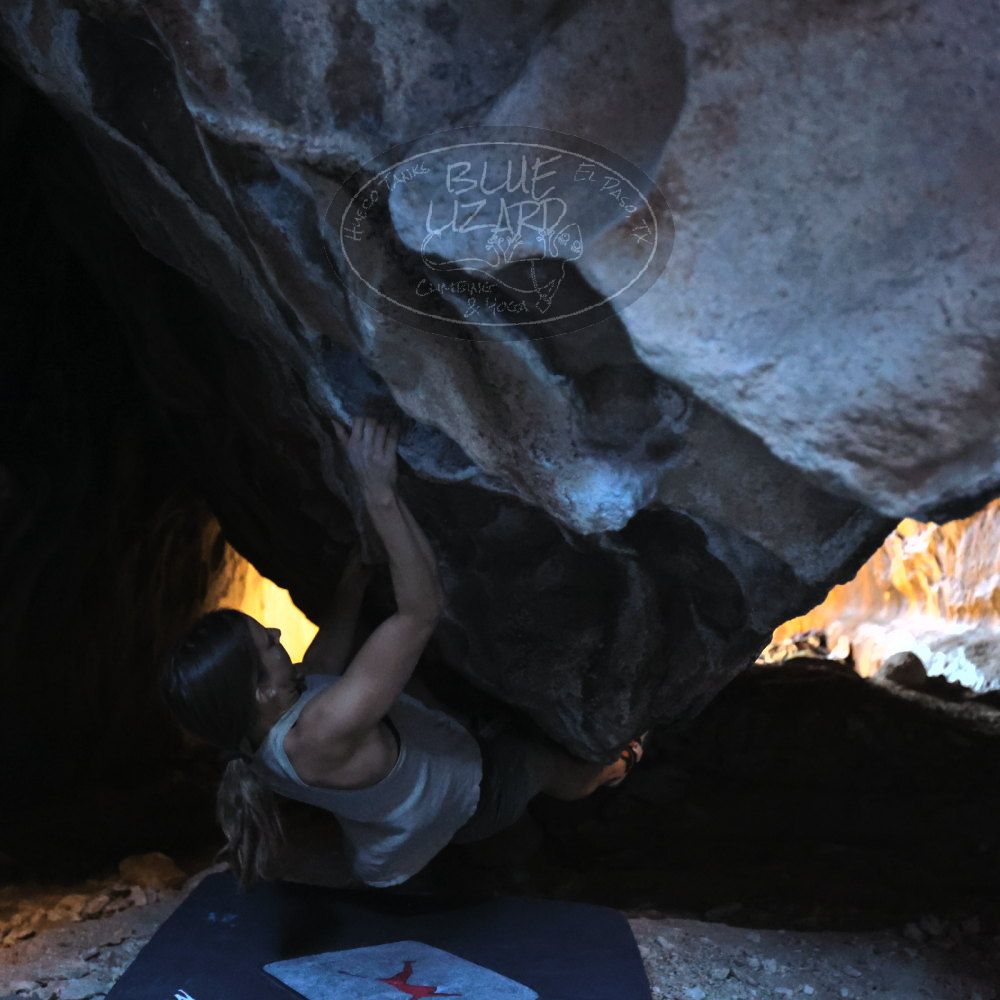 Blue Lizard Climbing and Yoga Hueco Tanks guiding on November 9, 2024, with Alayna, Anika, Becca, Britney