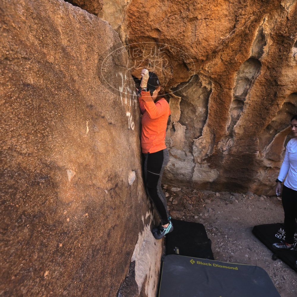 Blue Lizard Climbing and Yoga Hueco Tanks guiding on November 10, 2024, with Alayna, Anika, Becca, Britney, Alison