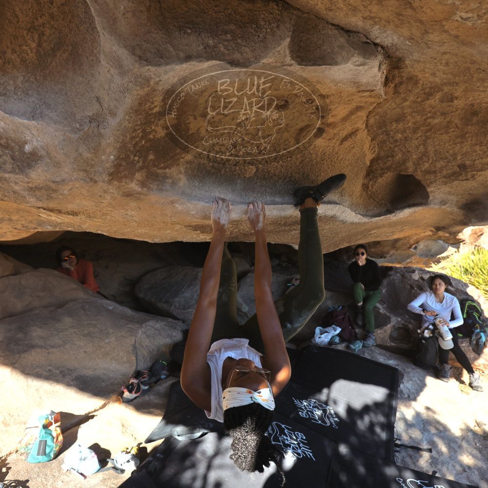 Blue Lizard Climbing and Yoga Hueco Tanks guiding on November 10, 2024, with Alayna, Anika, Becca, Britney, Alison